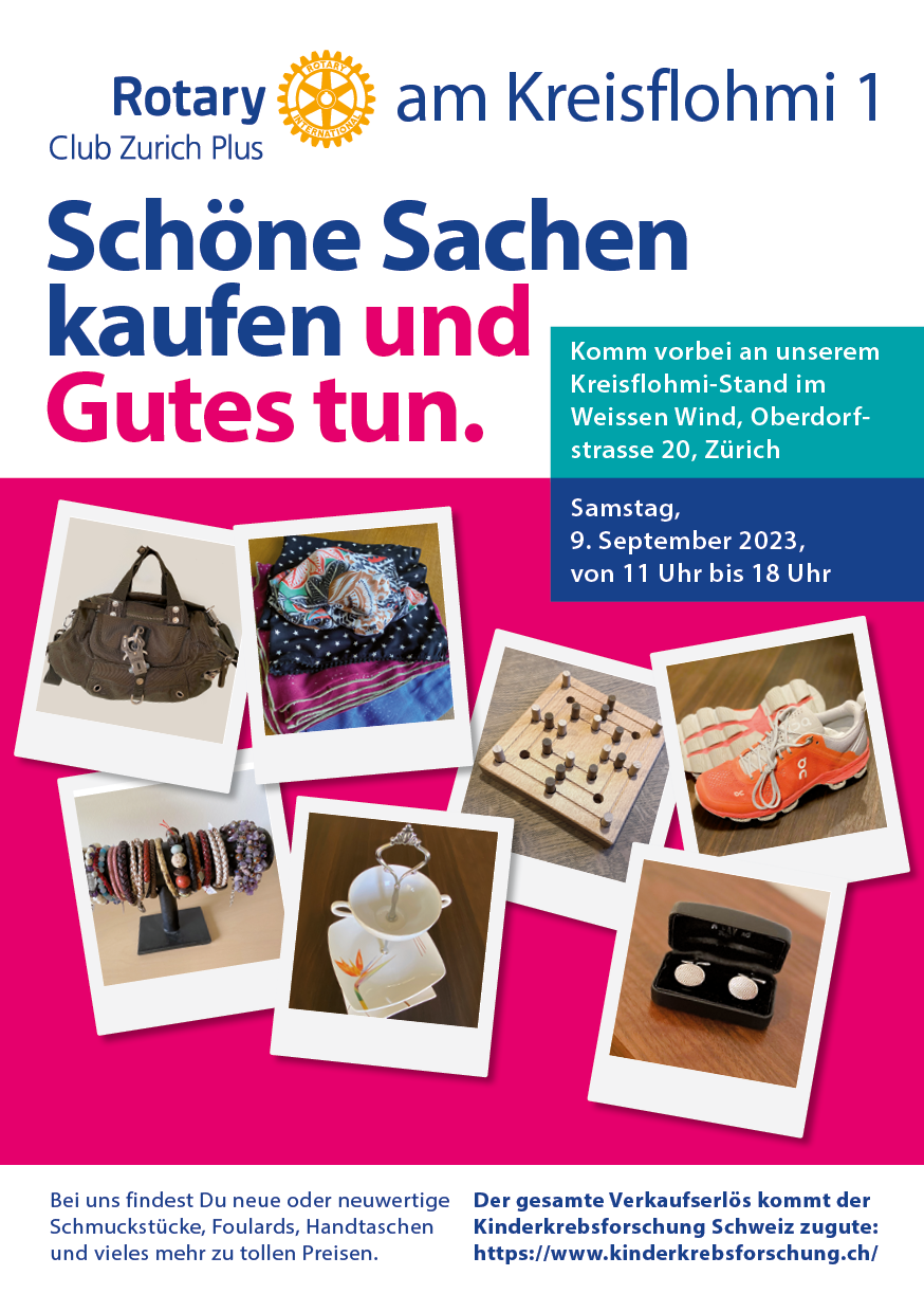 verkauft der Rotary Club Zurich Plus schöne Sachen für einen guten Zweck im Rahmen des Kreisflohmi